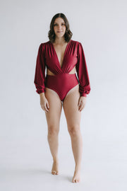 Este body escotado está hecho para destacar. La simetría, mangas largas bombaches y espalda escotada equilibra sensualidad y elegancia, convirtiéndolo en el aliado perfecto para ocasiones especiales o looks de noche.