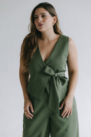 Este chaleco eternal es una pieza elegante y funcional. Su diseño cruzado con cinta ajustable interna permite adaptar el escote según tu preferencia, mientras que el lazo lateral te da la libertad de amarrarlo de distintas formas, creando looks únicos cada vez que lo usas.